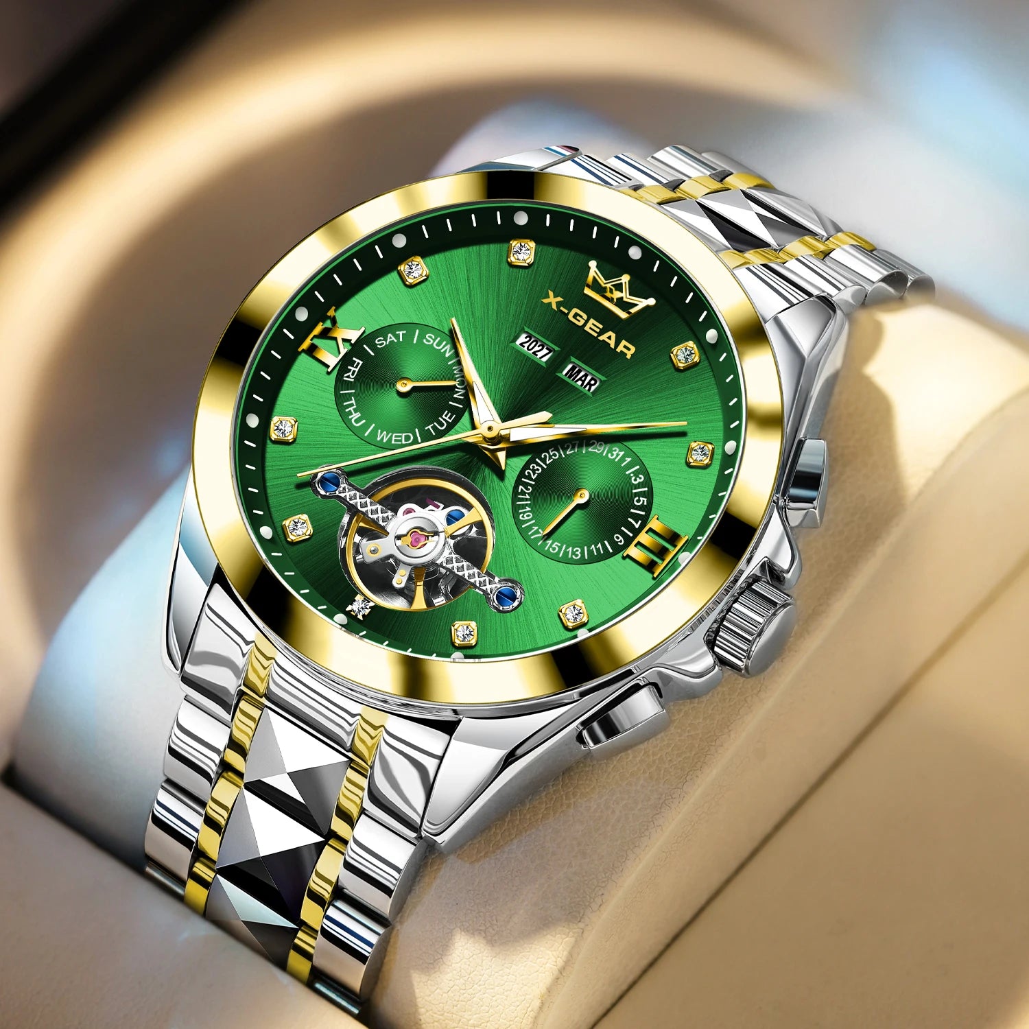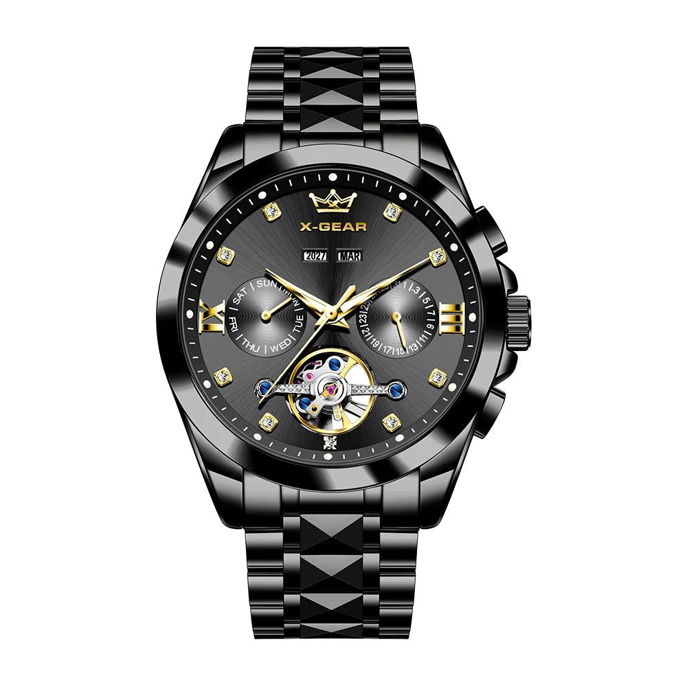 Trajto : tourbillon, Skeleto, Luma, Kompleta Kalendaro, Semajna Montrado, Akvorezista, Luma