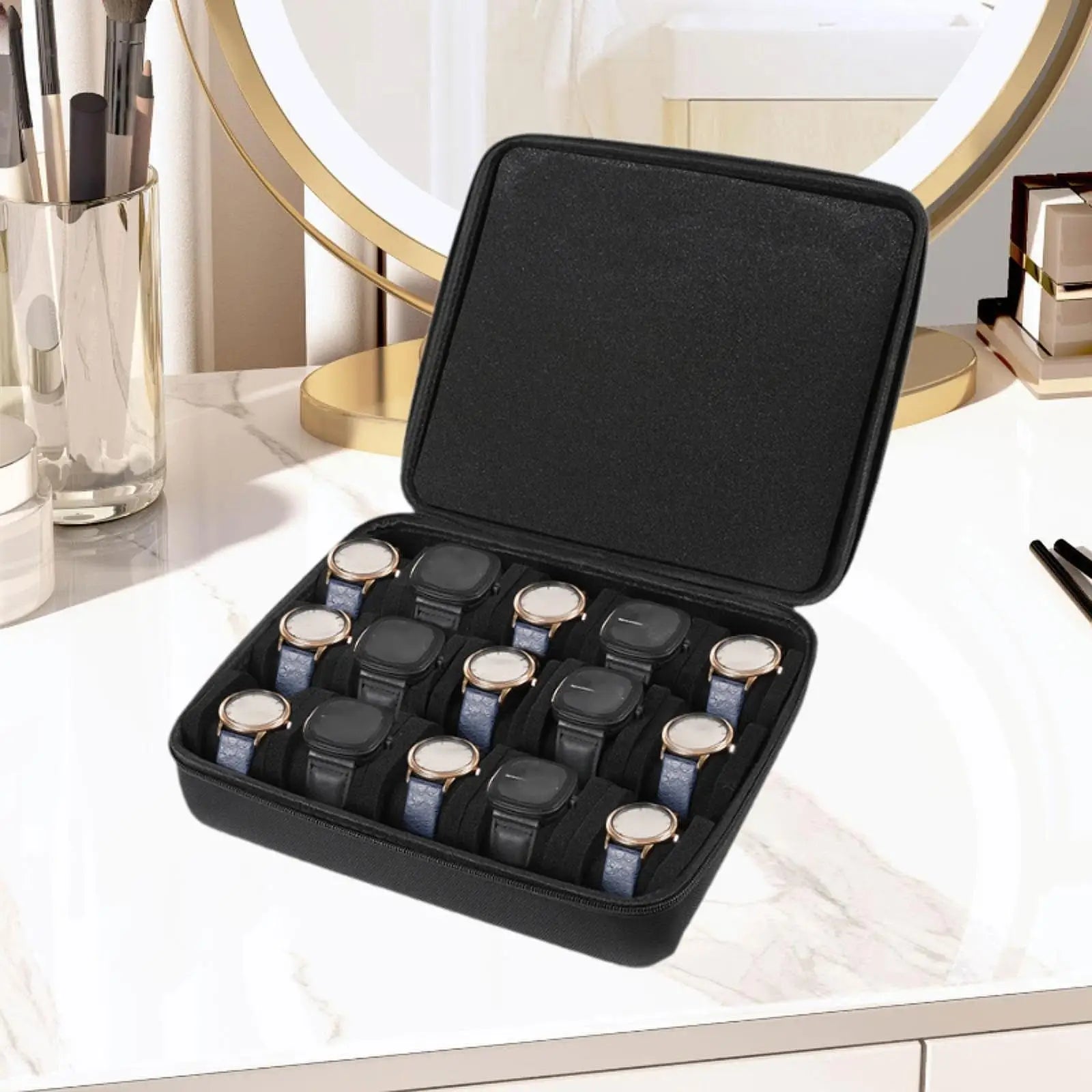 【Kvalita Materialo】: La interno de la horloĝa stokkesto estas farita el altkvalita Oksforda ŝtofo kaj EVA-materialo, kiu estas mola kaj elasta, kaj povas efike malhelpi la horloĝon grati dum movado.