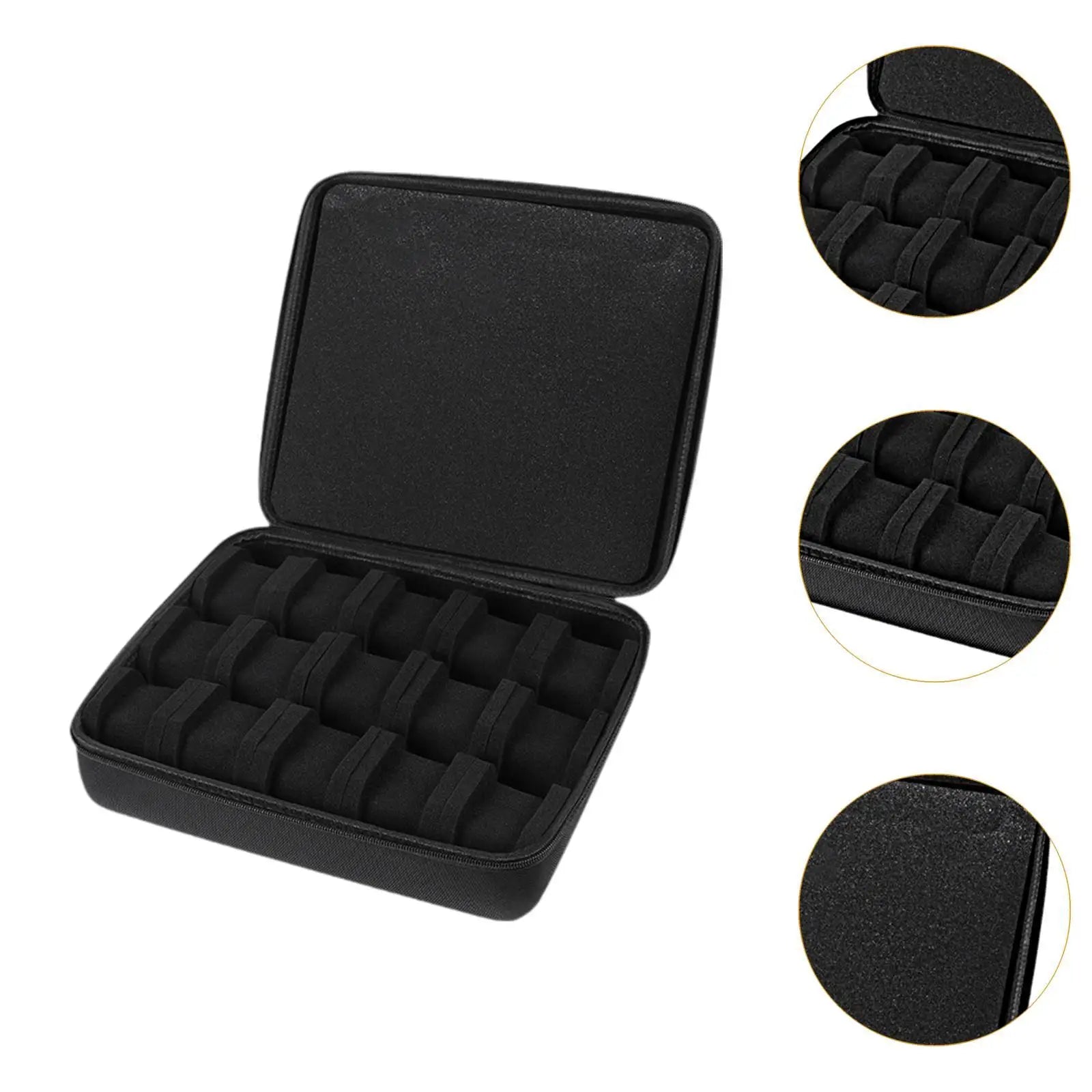 【Vojaĝujo por Horloĝo kun 15 Fojoj】: La vojaĝujo por horloĝo kun 15 fojoj estas oportuna por ordigi kaj stoki horloĝojn, ĉiu fendo havas spongan kusenon por protekti la horloĝon kontraŭ frotado kaj eluziĝo.