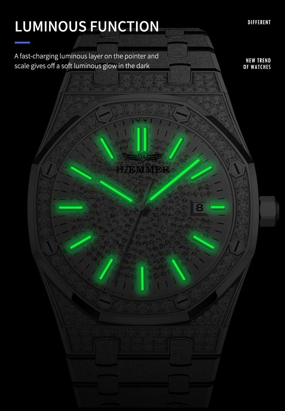 HAEMMER 2025 New Top Brand Man Quartz Watch Luxury Luminous Chronograph Wristwatch Stainless Steel Waterproof Men Calendar Clock