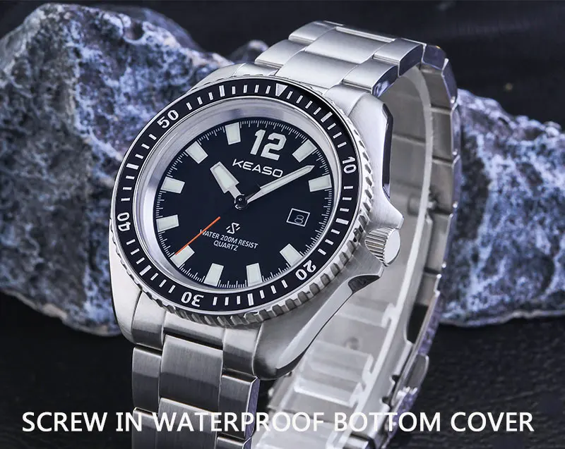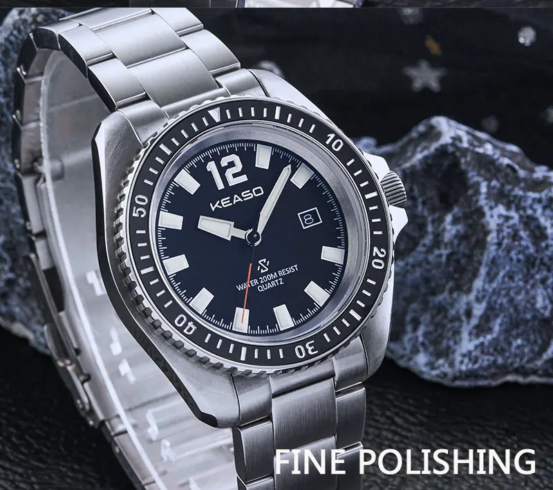 KEASO Men Quartz Watch Sapphire Ceramic Bezel Movement 200M Waterproof C3 Luminous Solid 316L Steel Dive Quartz Watch Men